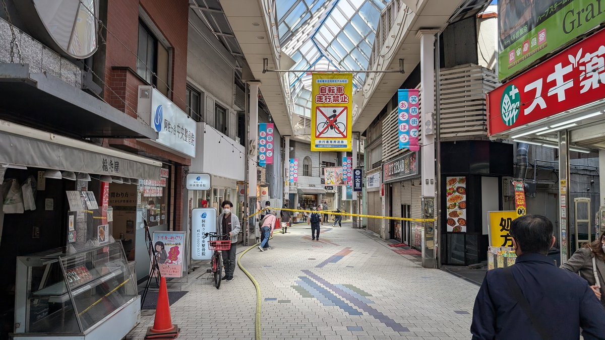 商店街の一部が通行止めとなっているので、安全か確認され、通行が可能となるまで開店時間を遅らせていただきます。 pic.twitter.com/cVSq2qxPf8— たいやき ともえ庵 (@tomoean) April 9, 2025