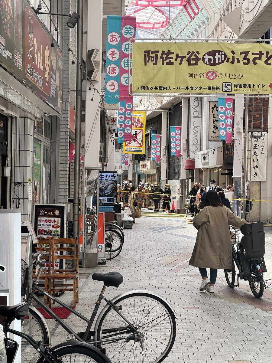 【火事情報】東京都杉並区阿佐谷南1丁目付近 工事現場に火災通報 阿佐ヶ谷商店街パールセンターの一部通行止め封鎖4月9日 #杉並区 #阿佐ヶ谷 #火災