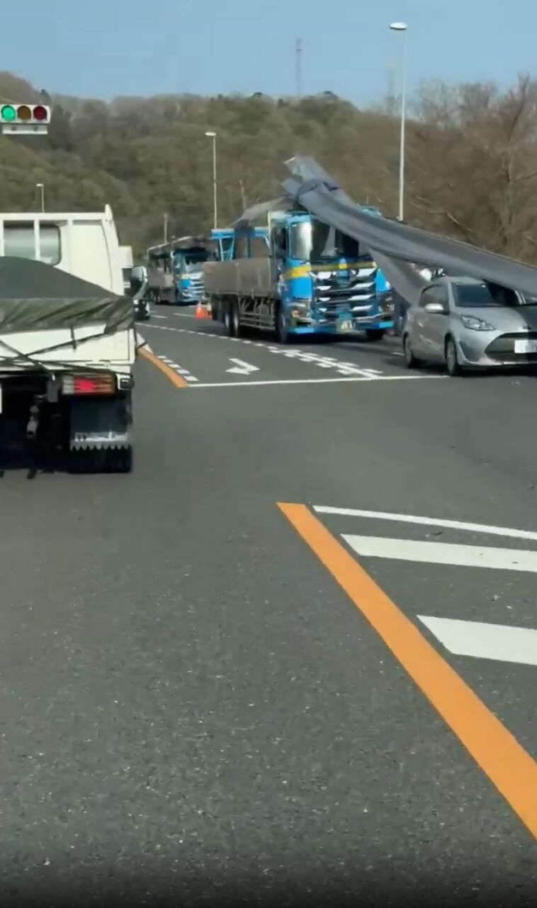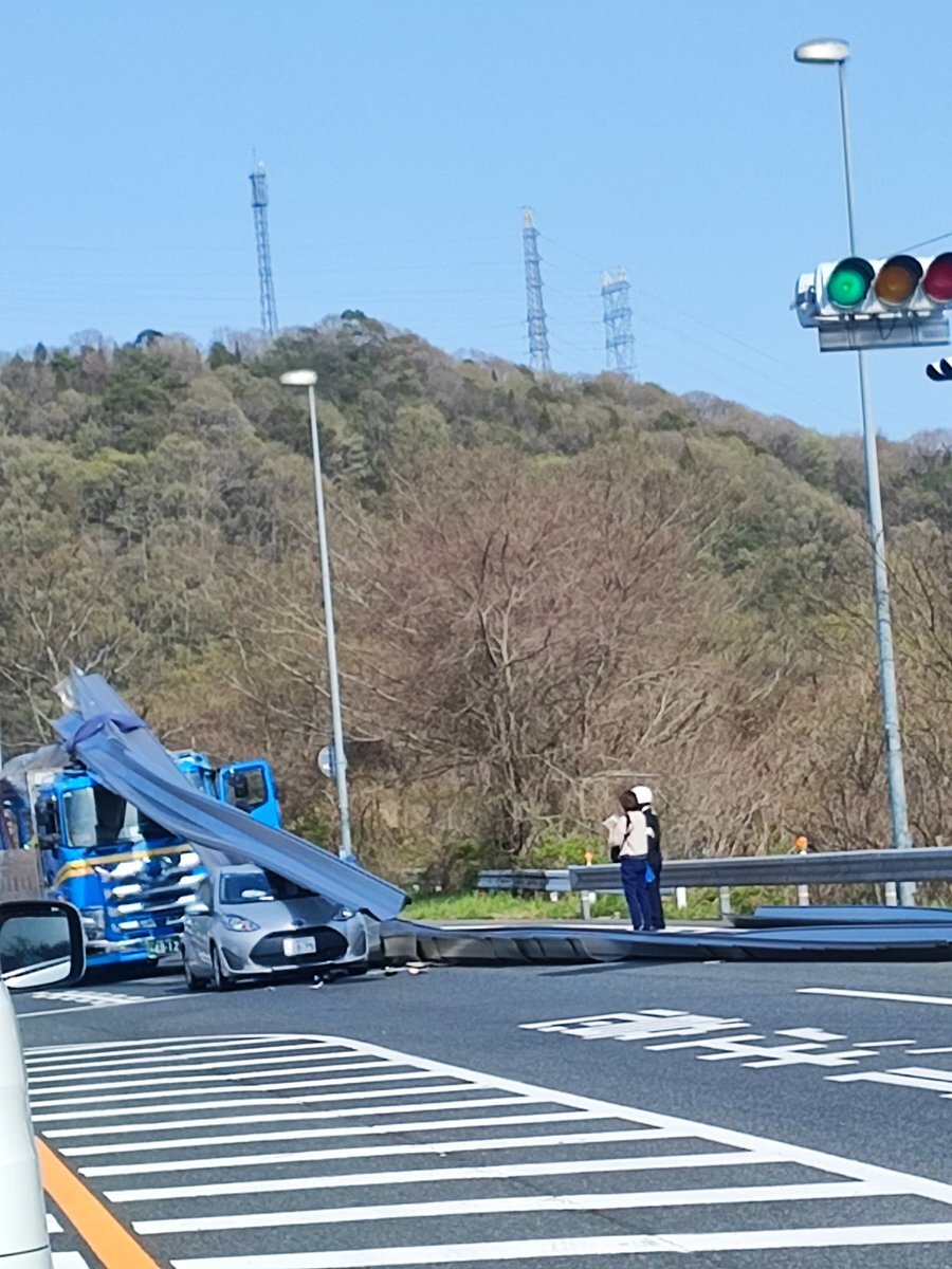 大型トラック荷物が、乗用車に倒壊して、上下車線規制。 pic.twitter.com/G83gWEyKzy— inakaojisan191 (@inakaojisan191) April 9, 2025