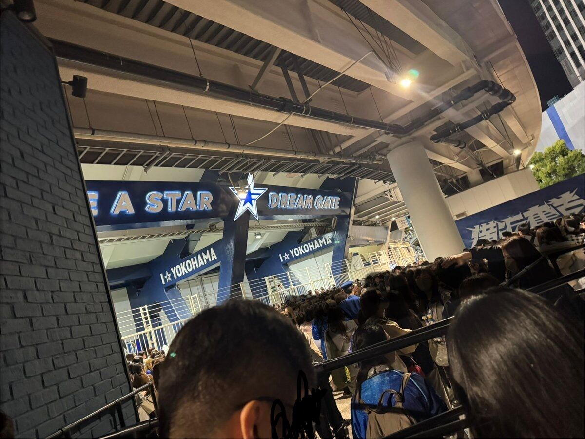 先頭が試合終了前から並び待機してたのが問題でした✊🏻そしてなぜか彼女達は強行突破しています。そこからさらに警備が強まり開かずの扉になりました✊🏻牧のHRから盛り上がりましたな楽しかったです🔥#横浜ベイスターズ #baystars #髙橋優斗 #ハマスタ https://t.co/ElwXTcr71z pic.twitter.com/Kfd2sxAXsl