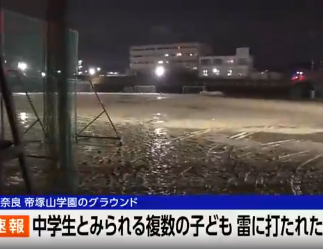 奈良市消防局によると、10日午後5時50分ごろ、同市の帝塚山学園のグラウンドで雷が落ち、サッカー中の生徒が倒れたと119番通報があった。少なくとも中学生ぐらいの男子3人が倒れているといい、消防が詳しく調べている。