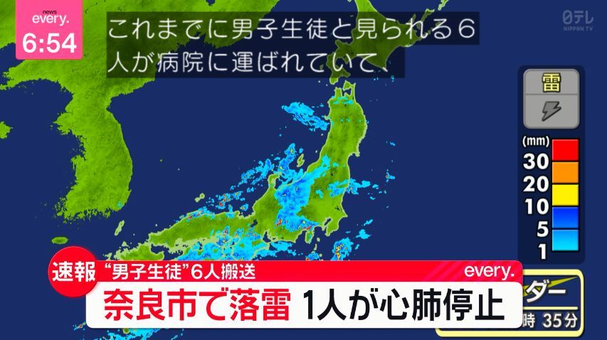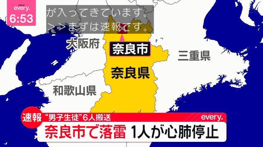 奈良県警察本部によりますと、10日午後6時前、奈良市学園中1丁目にある帝塚山学園のグラウンドで、中学生とみられる複数の子どもが雷に打たれたとみられ 倒れているということです。