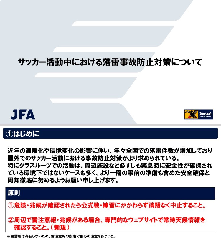 ◆JFAが昨年5月に出した落雷事故防止対策の指針