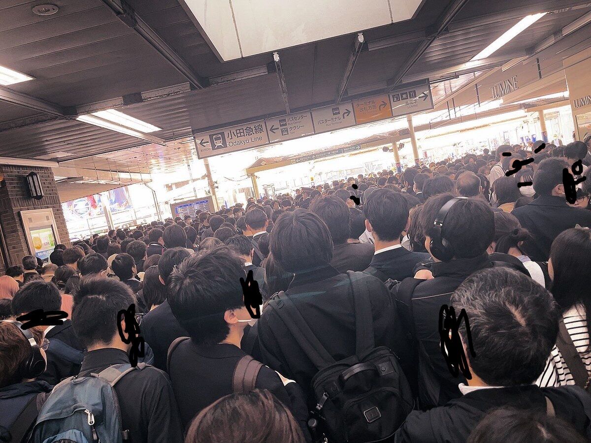 地元駅のホームがごったがえし 初めての出来事だが、今日は町田経由小田急線で新宿行こうと町田ついたらこれ 案外込み合ってるピークの辺り過ぎたらすっと進んで小田急急行なう リモートにすりゃ良かった(日数的にできない) pic.twitter.com/t2eqvvX8Fw