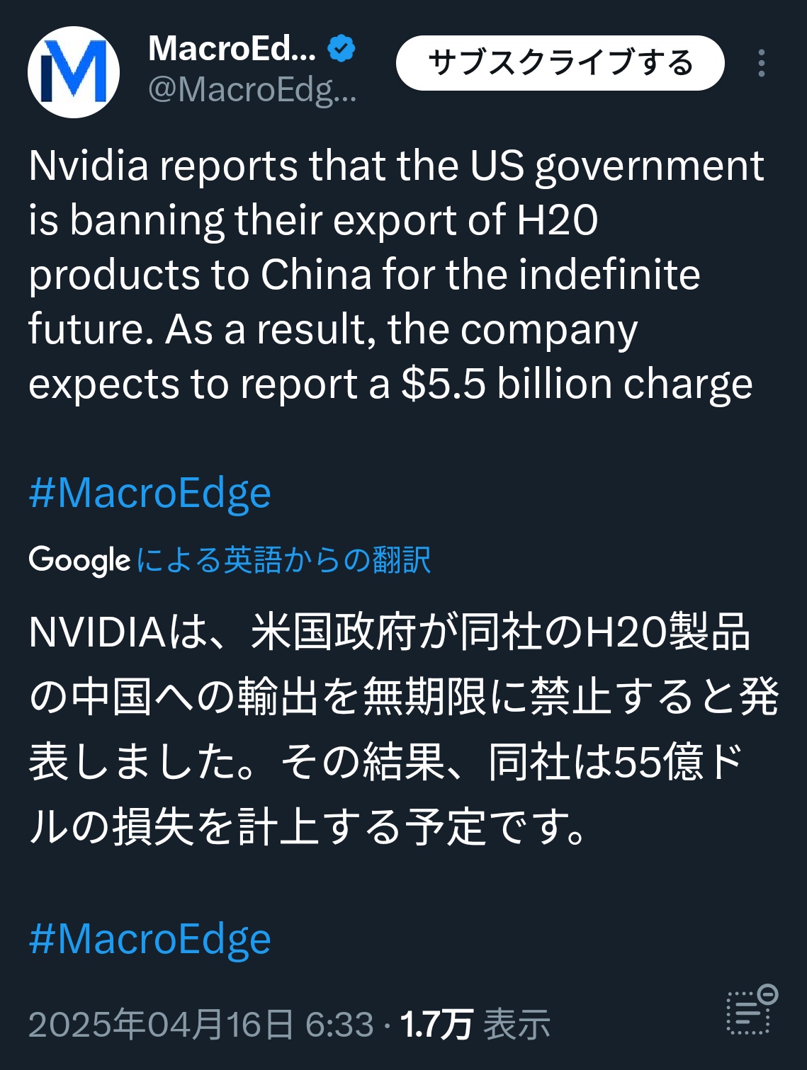 【地獄】NVIDIAさん、トランプにボコられる 2025/4/16 速報 1: やりたい放題すぎる document.write(” + ”); 関連記事 森永卓郎氏ラストメッセージ「NVIDIA時価総額が日本のGDPと比肩するのは過大評価、宇宙開発は妄想、人が暮らしやすい土地は地球にある」 【地獄】Nvidia株急落、40兆円吹き飛ぶwwww 【地獄】Nvidiaさん、株価急落のタイミングが完璧すぎると話題にwwwwwwww document.write(” + ”); 続きを読む ——— Source: アルファルファモザイク 【地獄】NVIDIAさん、トランプにボコられる