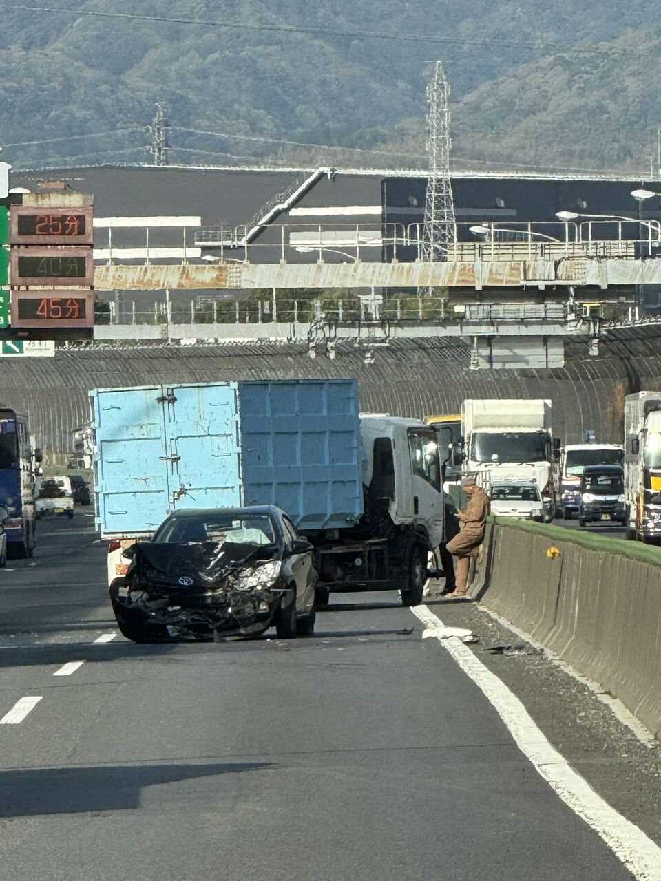 【現場の状況】#交通情報 名神高速 下り 京都南IC→掛川PA付近 破片散乱トラックと乗用車絡む衝突事故で2車線規制渋滞4月17日 #渋滞 #名神 #京都