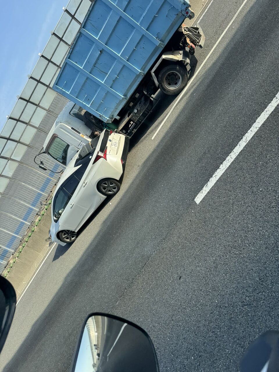 乗用車反対向いていて、ガラス、部品散乱して右側2車線1部使えません#名神高速 pic.twitter.com/edGtTjsrwi