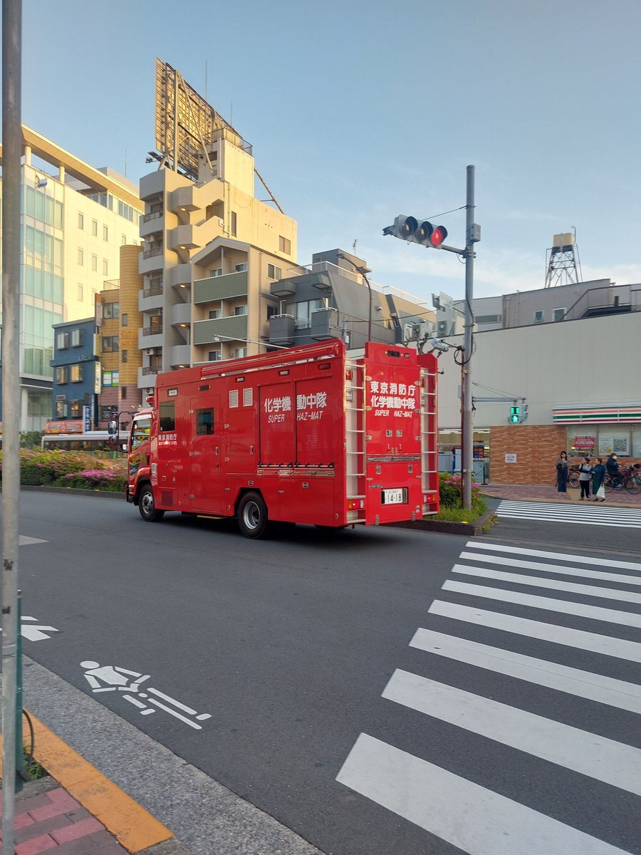 糀谷駅前がどえらい消防車とまってる。。火事、強風でなんか崩れた?車なので環八からの一瞬しか見えず