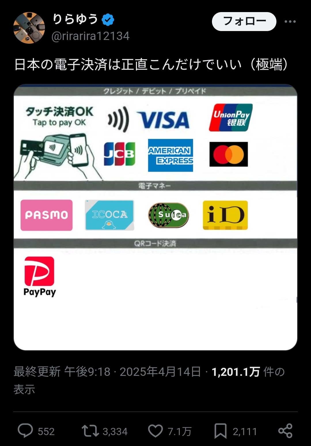 【画像】日本に必要な電子マネー、マジでこいつらだけwwwwwwwwwwwwwwwwwwwwww 2025/4/18 速報 1: document.write(” + ”); 関連記事 【悲報】大物YouTuberさん「電子マネーを使え、現金派は終わってる」 【電子マネーなんて売らなきゃいいんだよ】女子大生さん、大人のサイトをみて電子マネーを購入しようとしてしまう→コンビニ店員が詐欺に気付く document.write(” + ”); 続きを読む ——— Source: アルファルファモザイク 【画像】日本に必要な電子マネー、マジでこいつらだけwwwwwwwwwwwwwwwwwwwwww