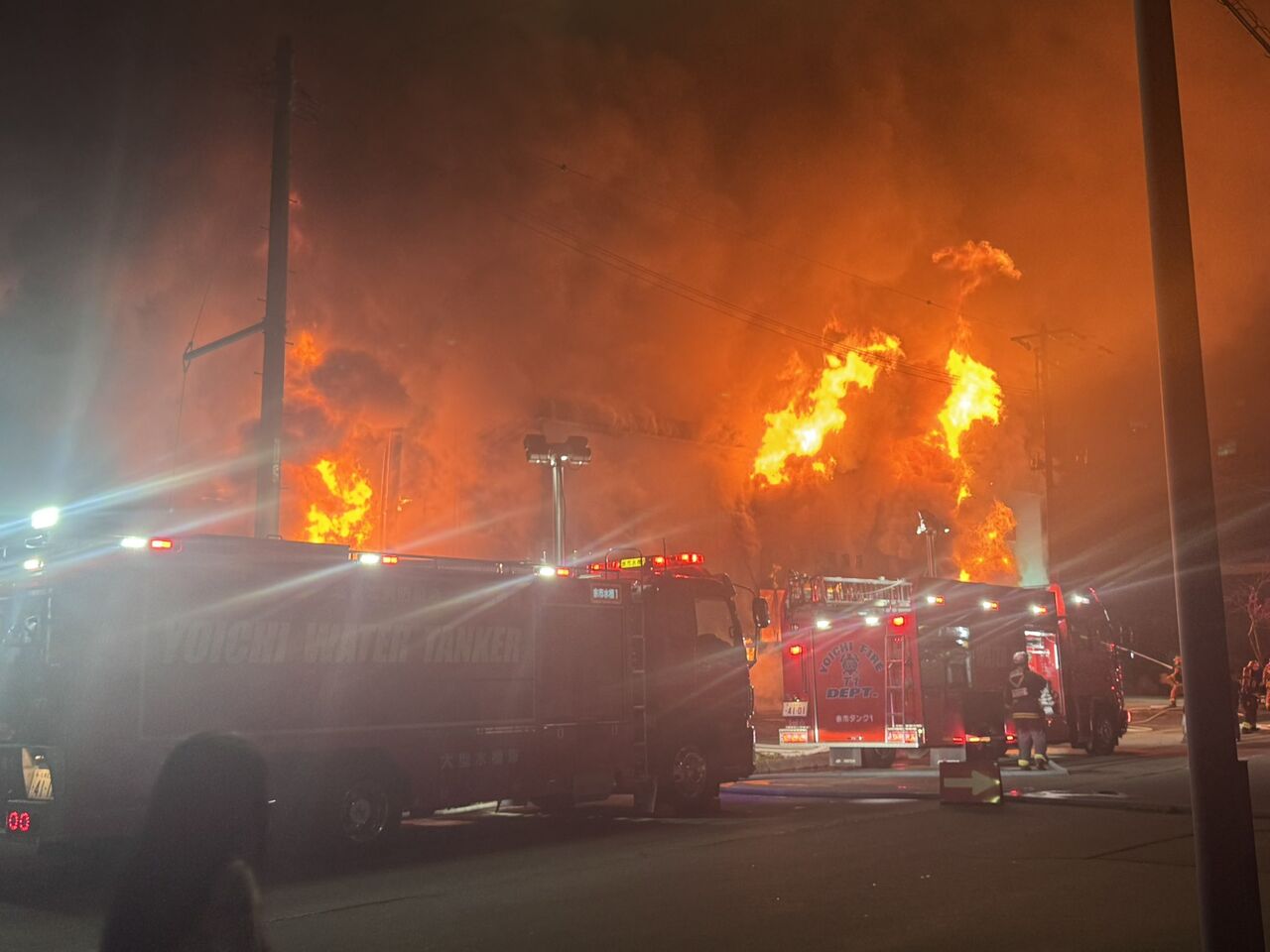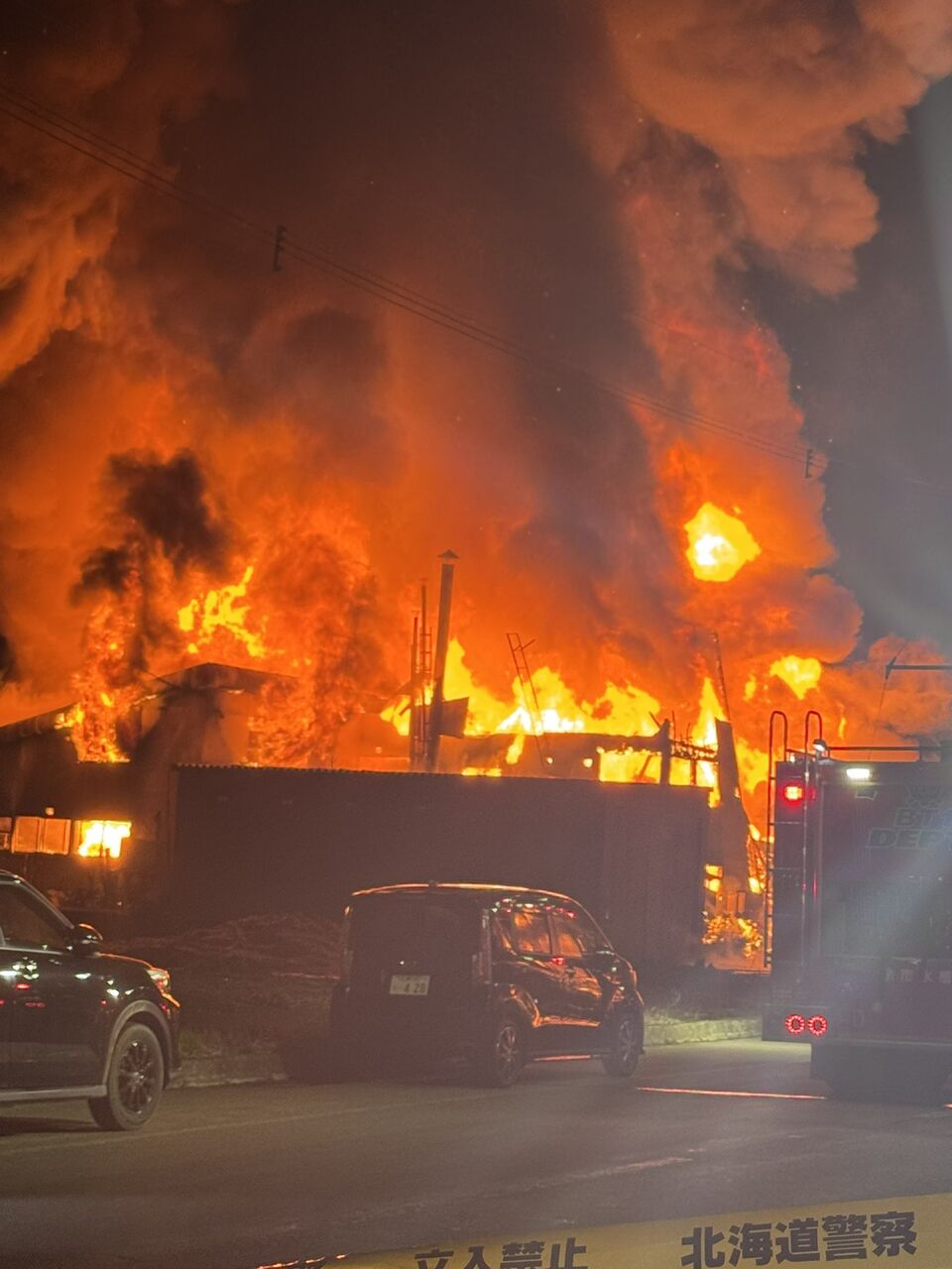 もうもうと炎が燃え盛り、大量の煙が立ち上っています。火事があったのは、余市町港町にある水産加工会社の建物です。