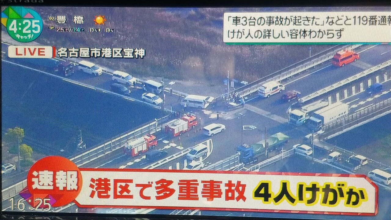 2025年4月18日 16時ごろ 愛知県名古屋市港区付近で事故が発生している目撃情報が寄せられた。
