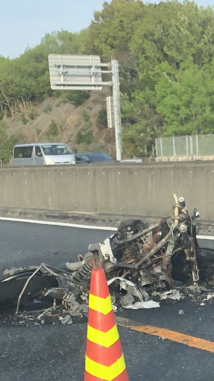 『阪和道泉佐野JCT手前の事故通行止め、片道が通行可能に。現場は怖いくらいにバイク🏍️が黒焦げでした😱』