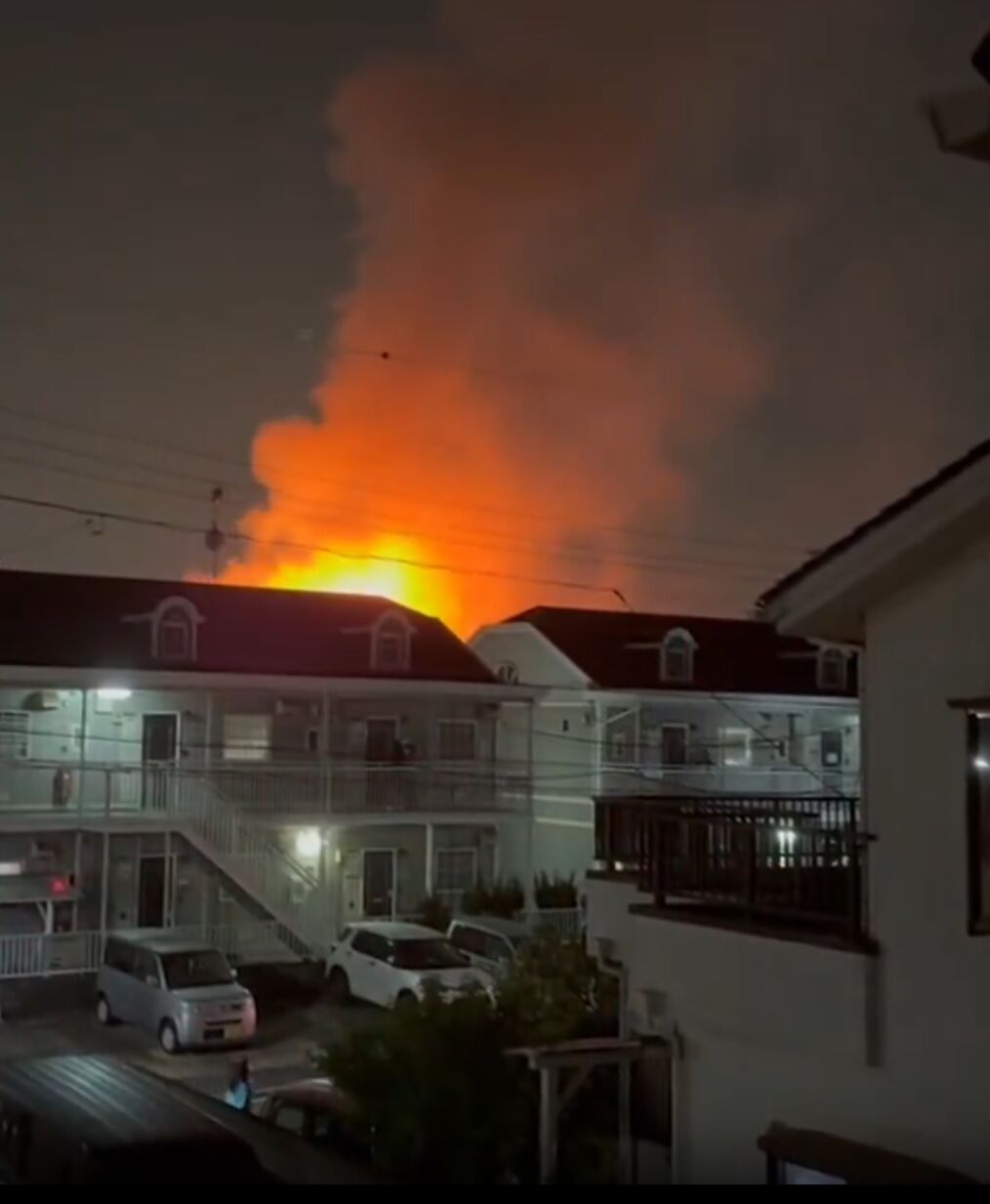 今、ベランダから火事が見える
