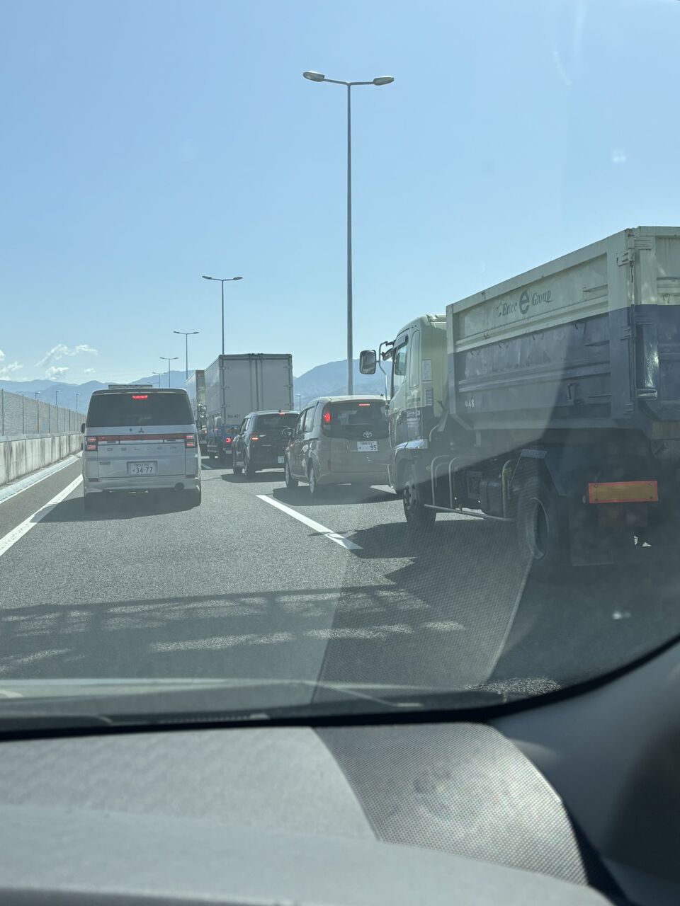 『新環状道路の南アルプスから、甲府方面で横転事故で大渋滞です!下道をお勧めします』