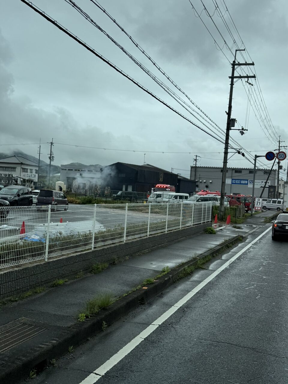 【火事情報】滋賀県湖南市石部口2丁目 県道4号線沿い ラーメン店付近建物から煙あがる火災4月23日 #滋賀 #湖南 #火災