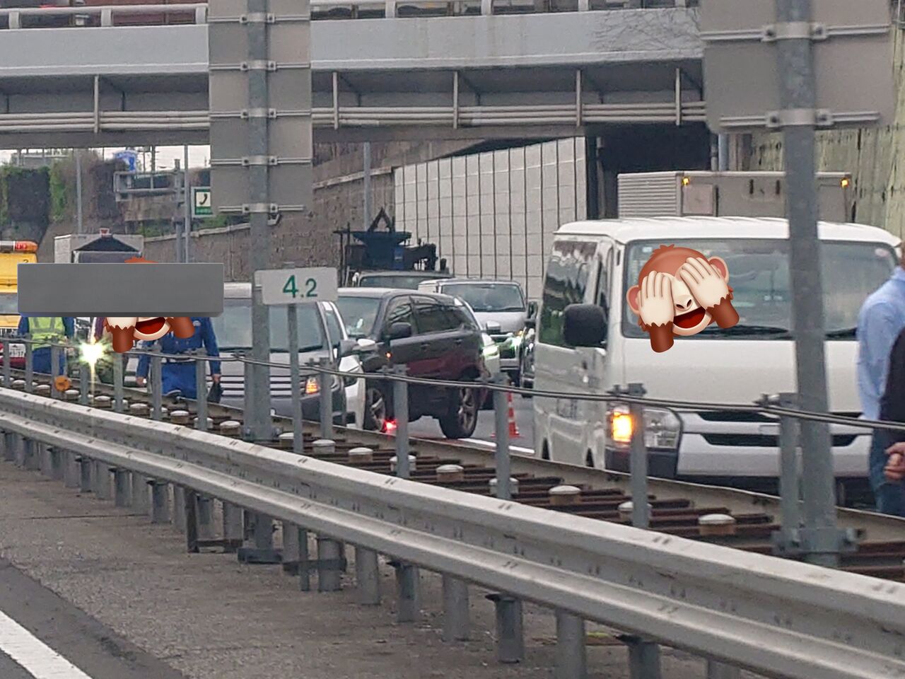 『東北道名物、浦和料金所手前で、2件のオカマ事故発生ですぅ。