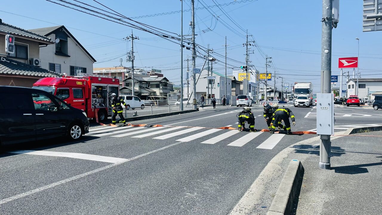 多数の緊急車両の通行や周辺の交通渋滞等に注意してください。