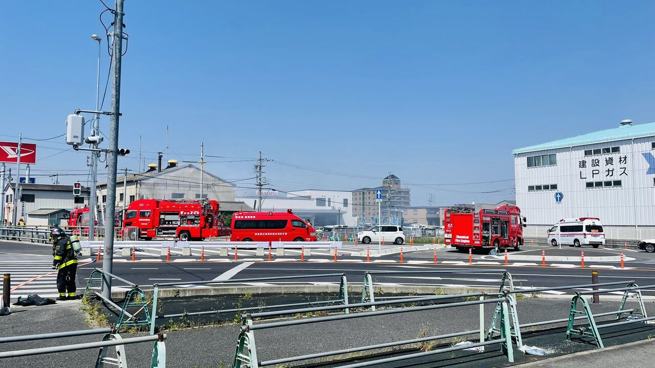 香芝のユニクロに来たら、斜め向かいの工場?で火災。消防車、救急車、パトカーが続々と集まってきたので周辺渋滞しそう。#火災 #香芝市 #渋滞 pic.twitter.com/cuJFLIbSPb