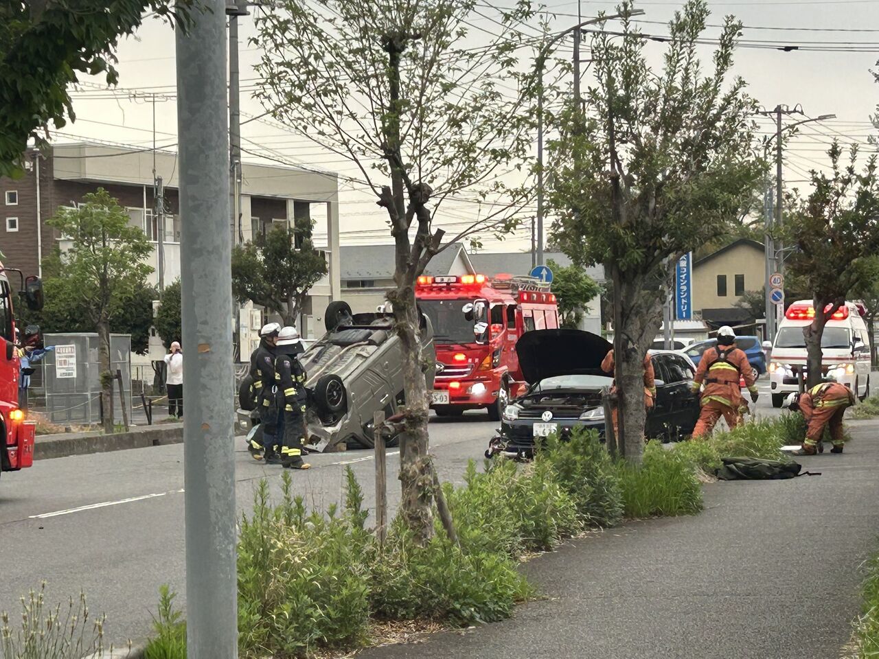 ちょうど事故直後で、消防車両が到着したところでした