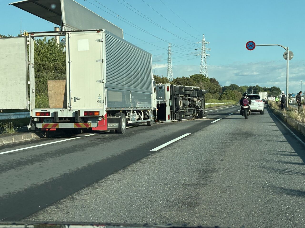 【現場の様子】#交通情報 国道17号 上武道路 下り 群馬県太田市新田花香塚町付近 トラック衝突横転事故で交通規制4月29日 #群馬 #太田 #ゴールデンウィーク