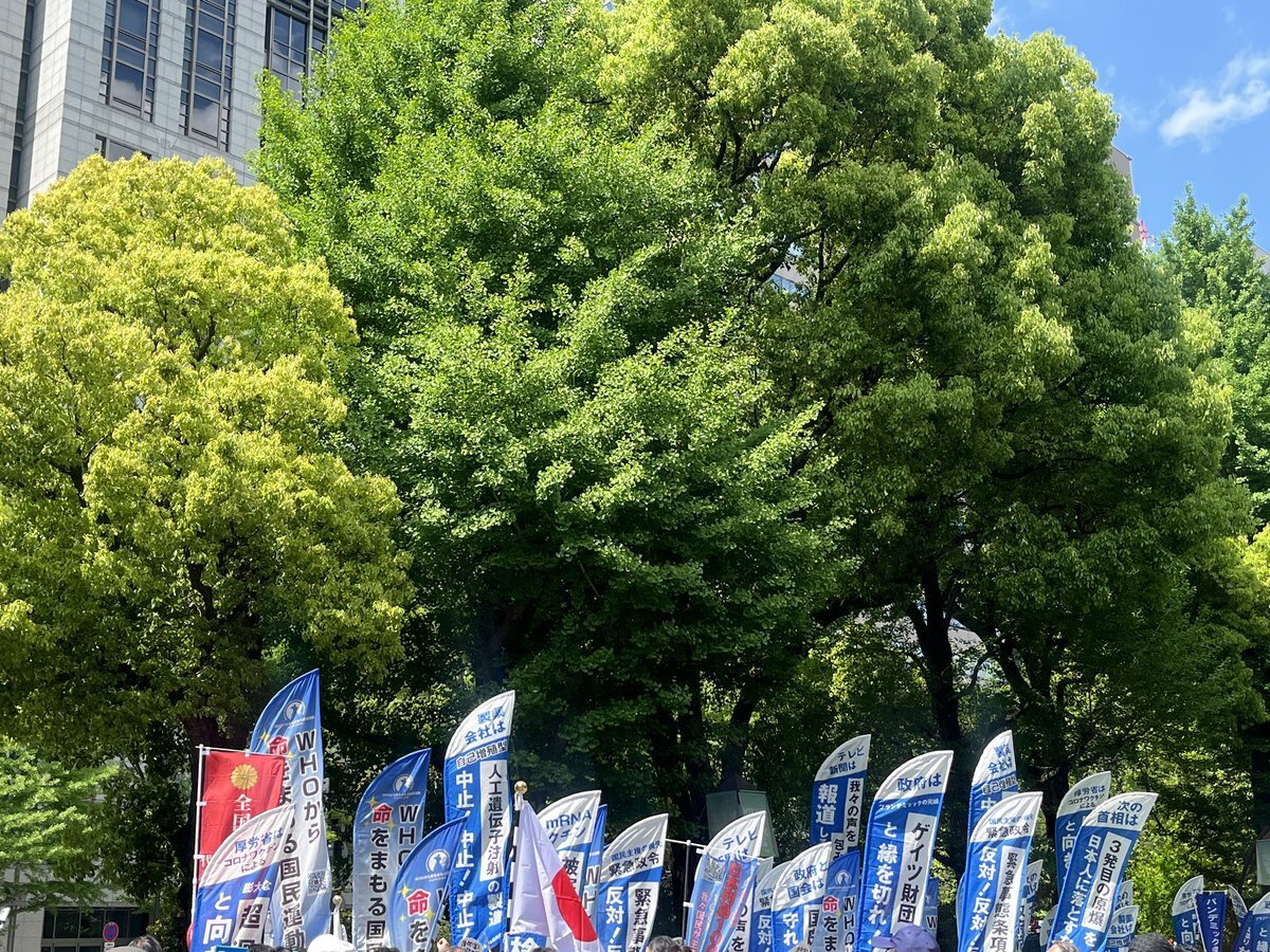『ジムの帰りに日比谷公園散歩しようとしたらデモやってて入るの嫌になっちゃった😔』