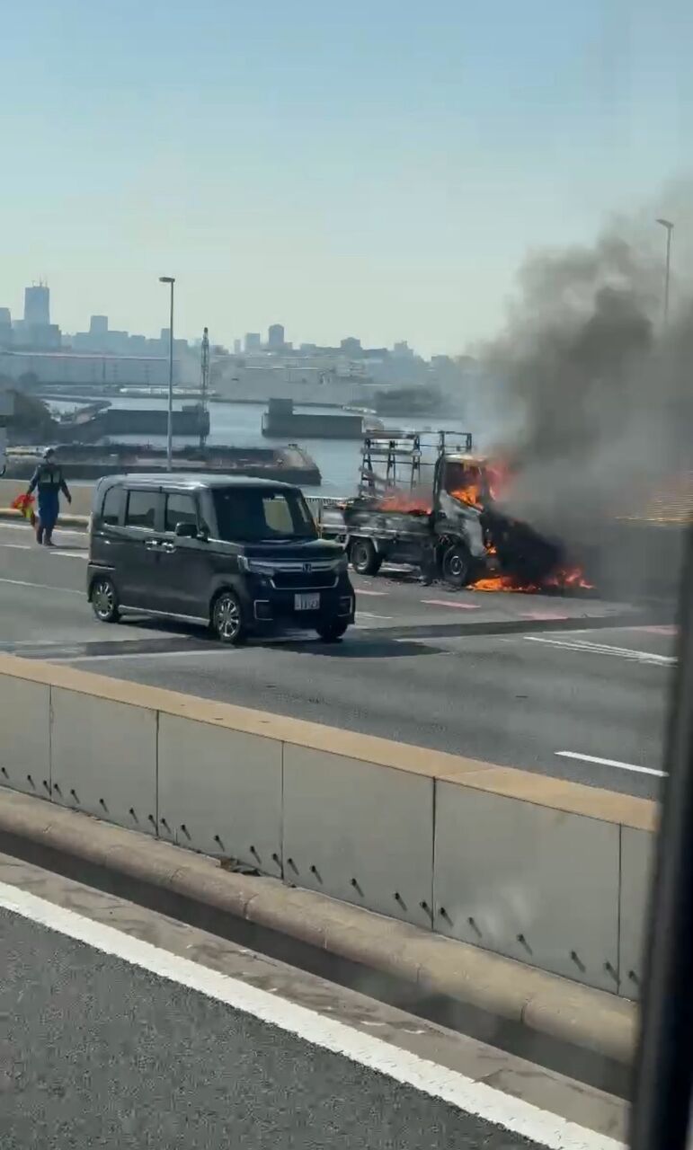 『湾岸線で車炎上してた横通ったら熱かった』