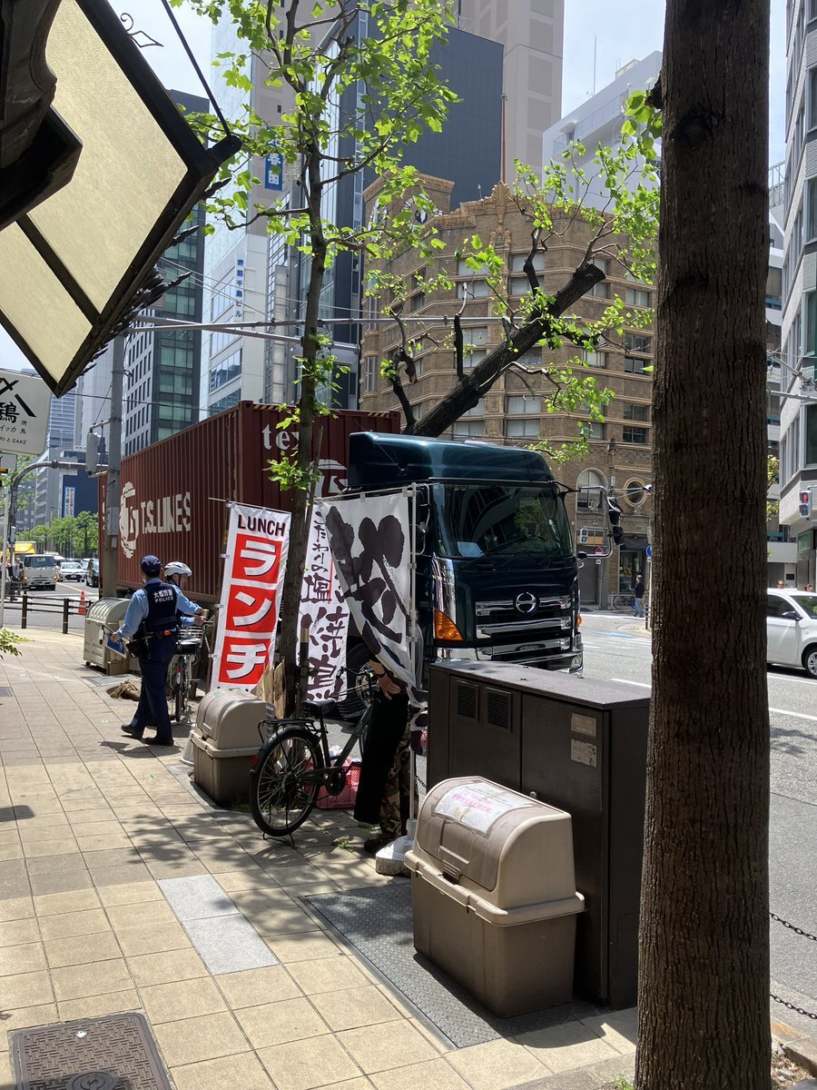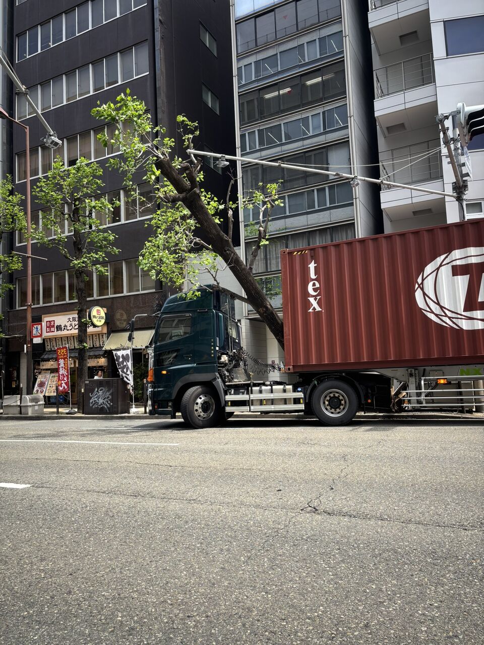【現場の様子】#交通情報 府道102号線 大阪府大阪市中央区平野町1丁目付近 大型トレーラーが街路樹巻き込む事故で一部交通規制渋滞5月1日 #大阪 #ゴールデンウィーク