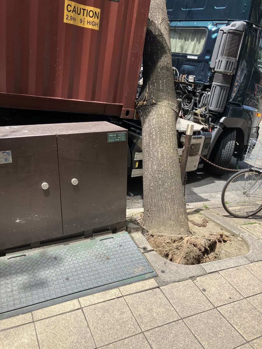 会社近くの交差点でトレーラーが街路樹をなぎ倒してる。 pic.twitter.com/diwBXMF1rF