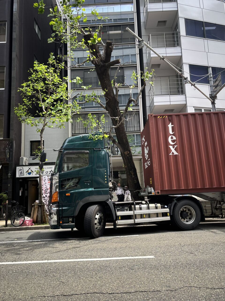 ごはん食べに出かけたら、トレーラーから木が生えてた。 pic.twitter.com/3ufaI61pHF