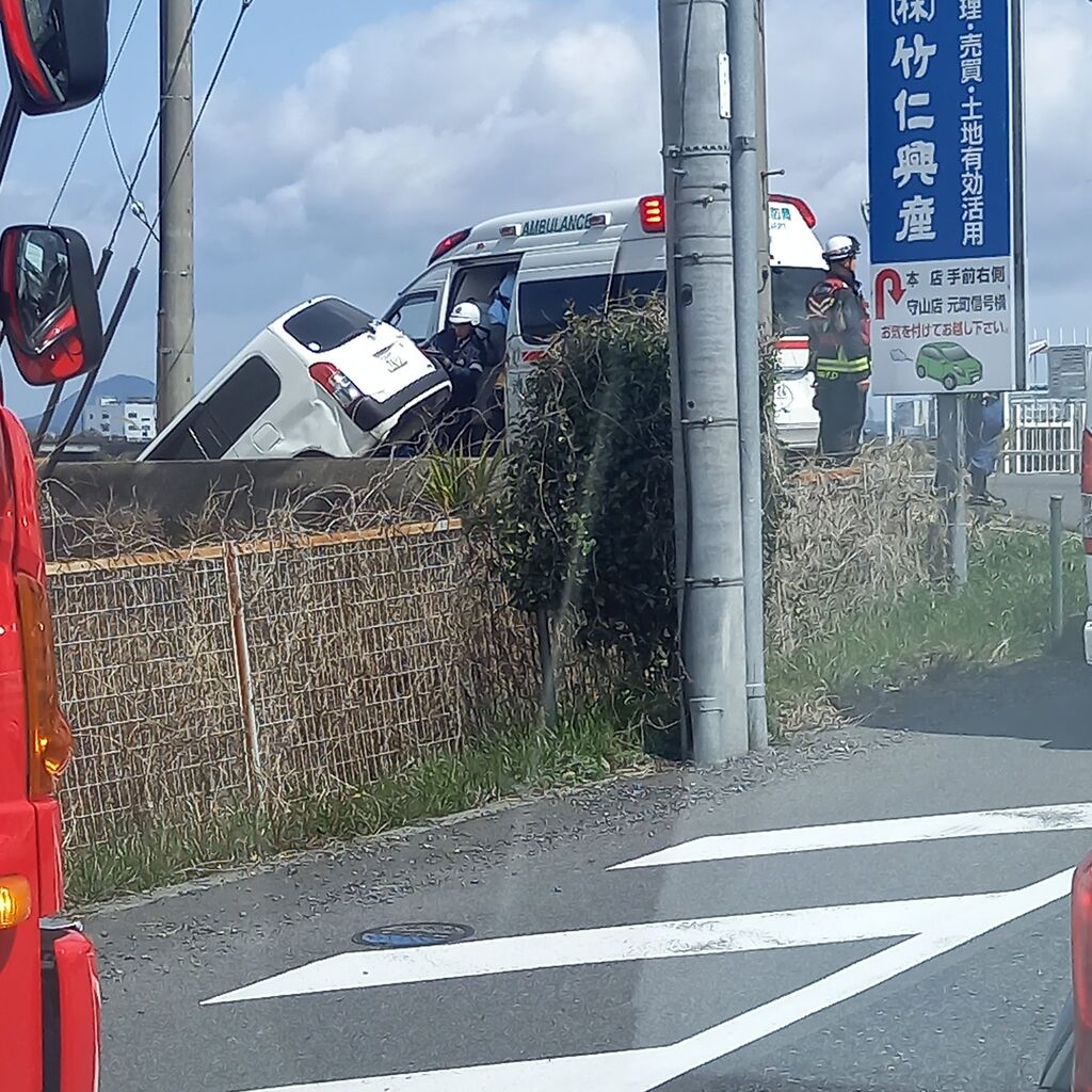 【現場の様子】#交通情報 県道504号 滋賀県野洲市野洲川橋付近 溝に自動車転落事故で規制渋滞3月22日 #滋賀 #野洲 #森山