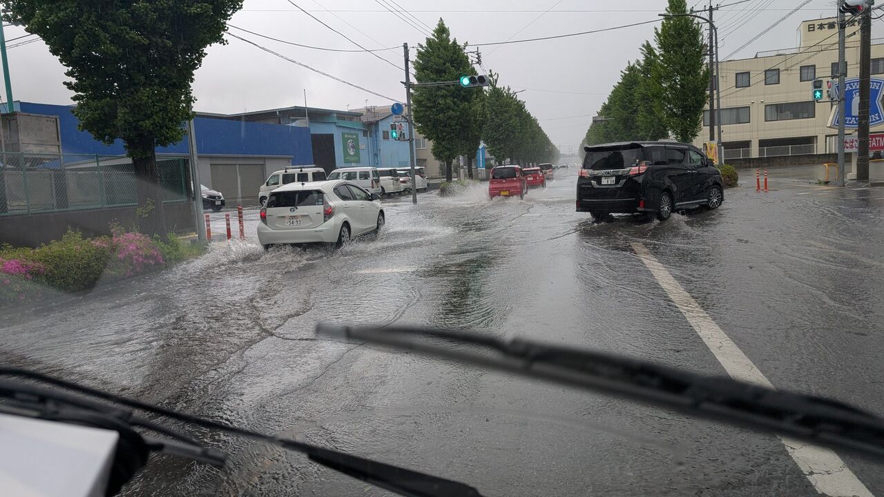 『産業道路、前橋の大友町〜高井町付近まで、道路が冠水していてこれ以上雨量が増えると走行不能になりそうです‼️‼️』