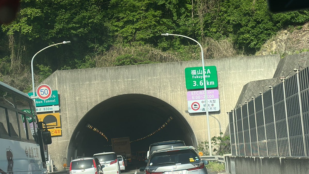 【現場の様子】#交通情報 山陽道 下り 福山東IC→山手トンネル付近 乗用車フロント大破事故で規制渋滞5月3日 #渋滞 #広島 #ゴールデンウィーク