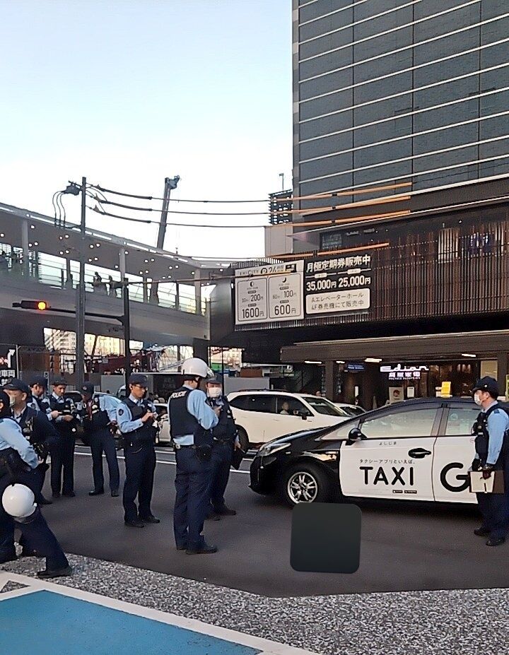 【目撃証言】#注意喚起 広島県広島市南区松原町 JR広島駅南口タクシー乗り場付近に多量のパトカー警察官出動事案5月4日 #広島 #タクシー #ゴールデンウィーク