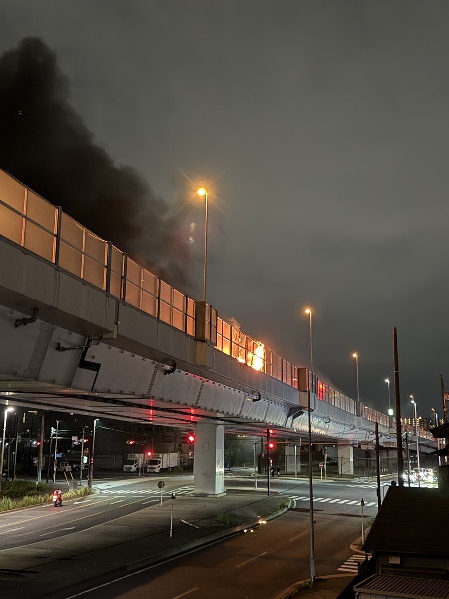 【現場の状況】#交通情報 首都高 神奈川6号川崎線 上り 大師JCT→殿町付近 車両火災で通行止め5月4日 #首都高 #川崎 #火災