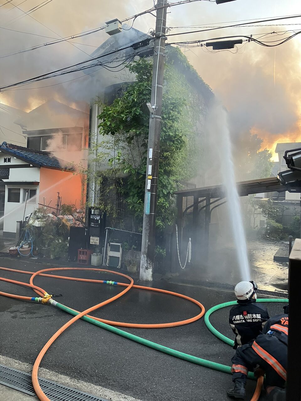 『八幡市双栗で火事やー』