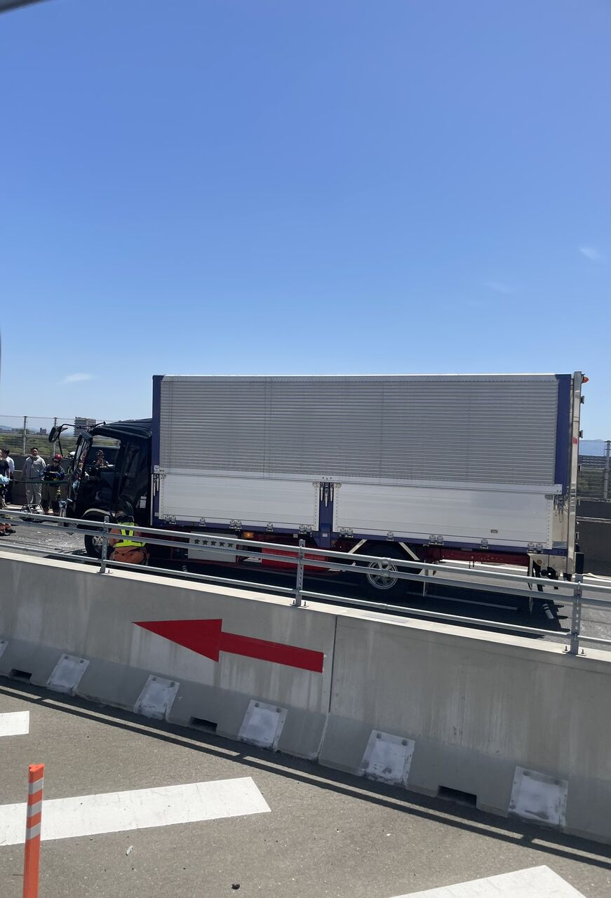 『阪神高速湾岸線高石でトラックぐしゃってた中型車間空けてなかったんちゃう?