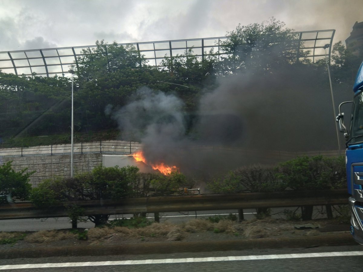 東名上り。大和トンネル手前で車両火災。 pic.twitter.com/X9r7hkJDmm