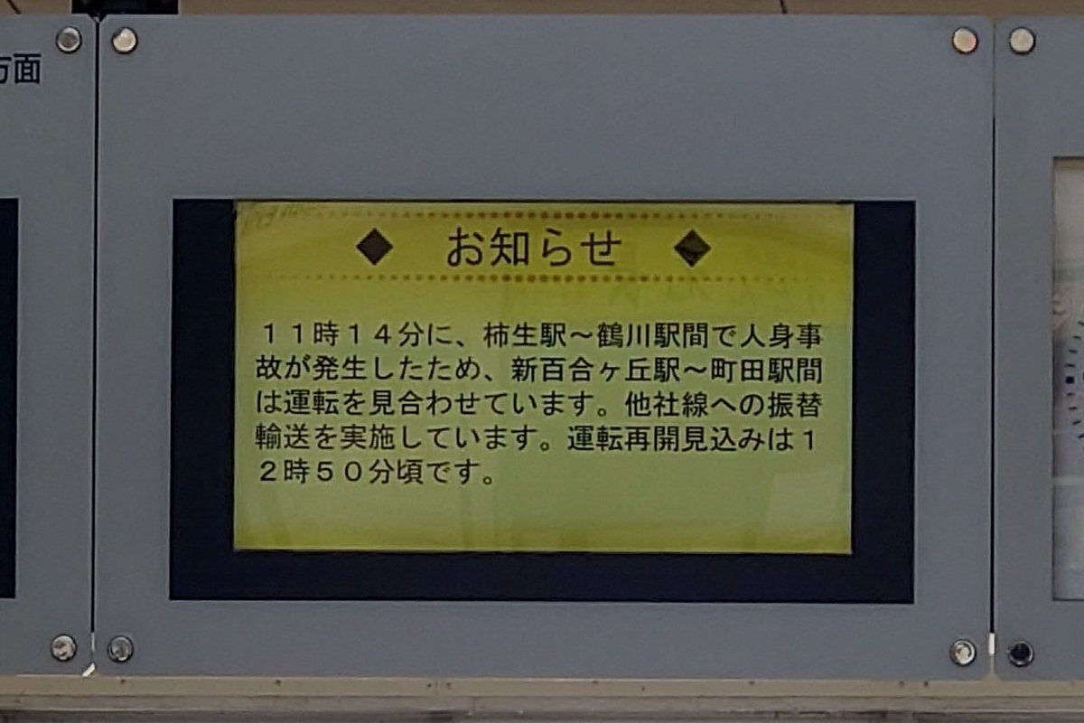 再開見込み12:50だって😇詰んだ😇😇😇柿生ってどこだよここ