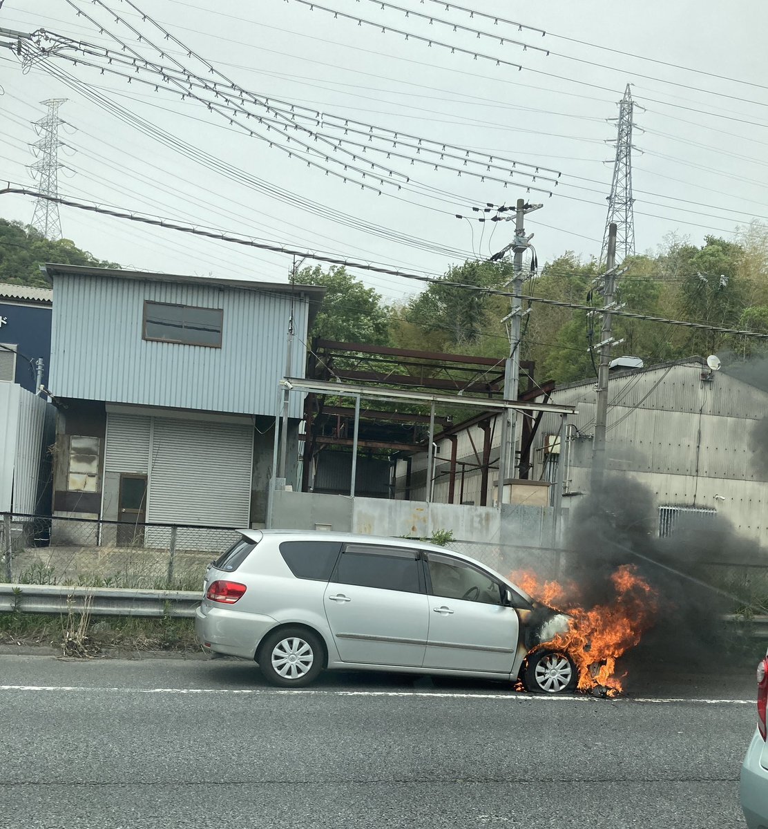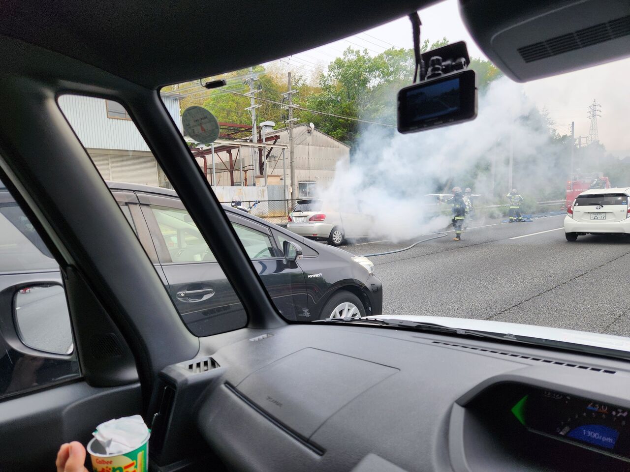 別所SA手前で車両火災事故なうです。#太子竜野バイパス