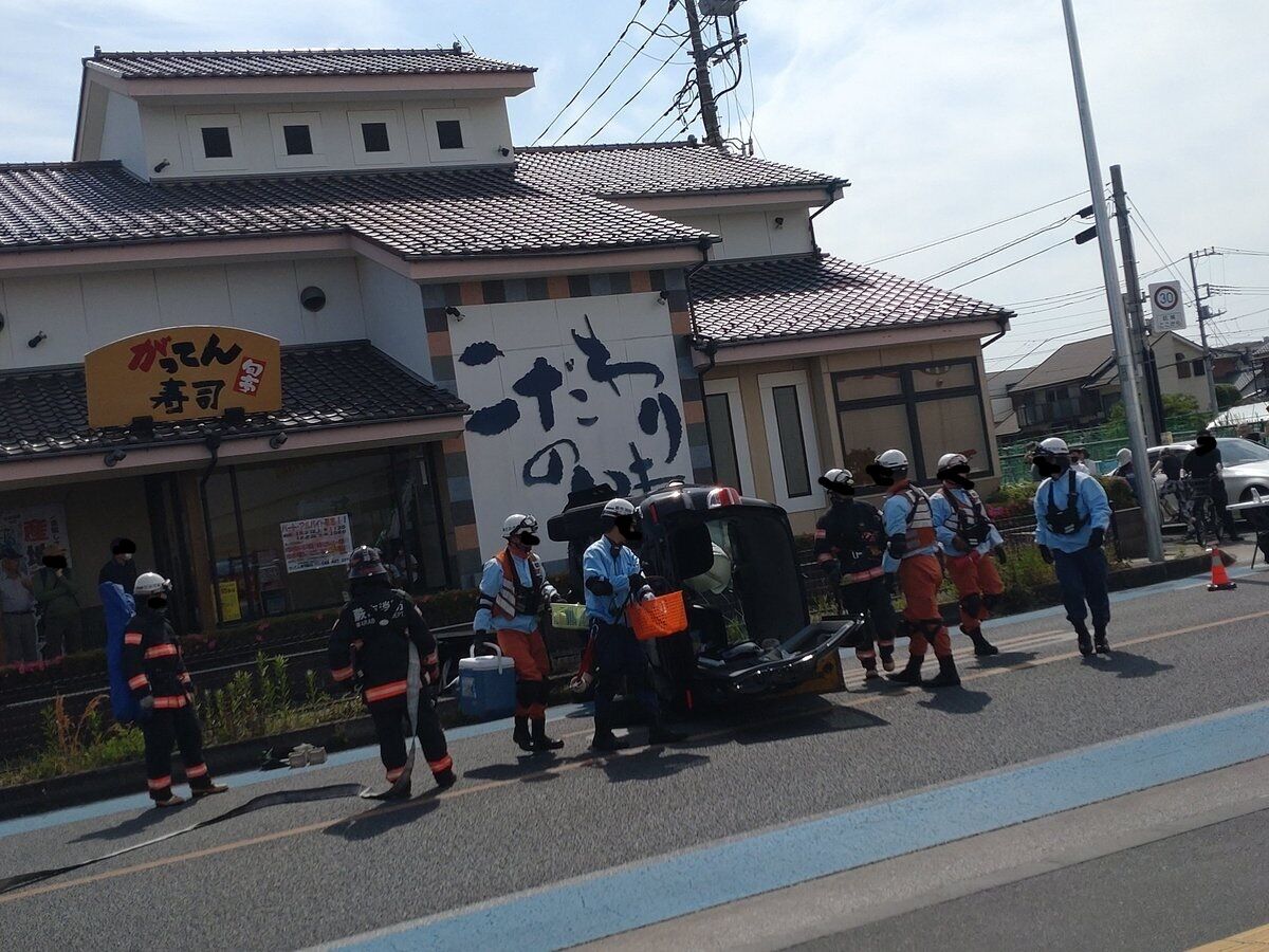ヤオコー蕨店やスギ薬局がある周辺の回転寿司がってん寿司蕨店近くで横転事故の模様