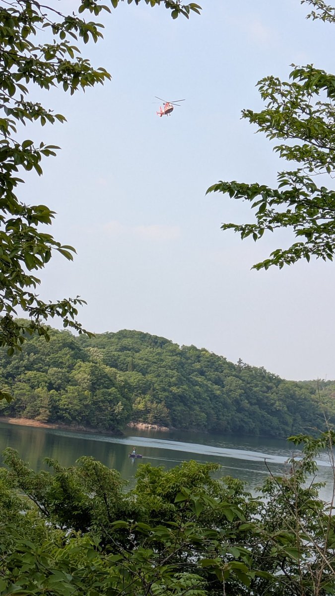 中日新聞、消防、警察のヘリが入鹿池上空飛んどるなぁ pic.twitter.com/5Q1UWU4B8a