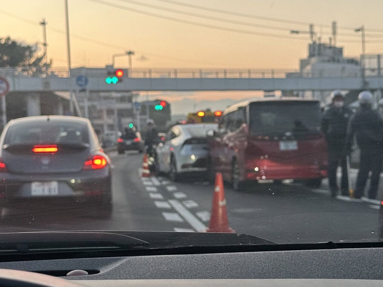 茅ヶ崎市柳島乗用車3台の追突事故により車線規制