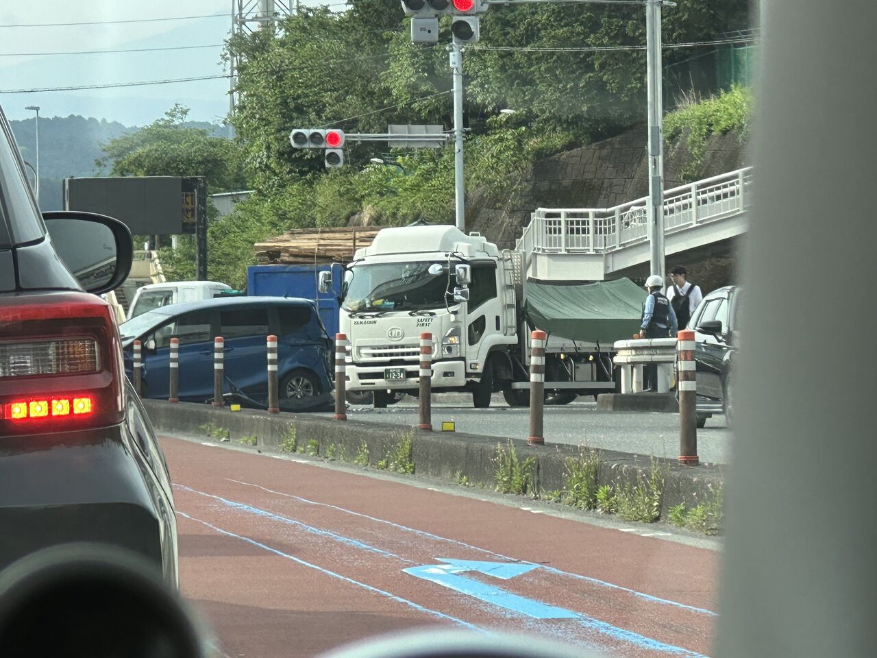 【現場の状況】#交通情報 国道246号線 上り 裾野IC入口交差点付近 車線塞ぐ車両事故で規制渋滞5月16日 #渋滞 #静岡 #裾野