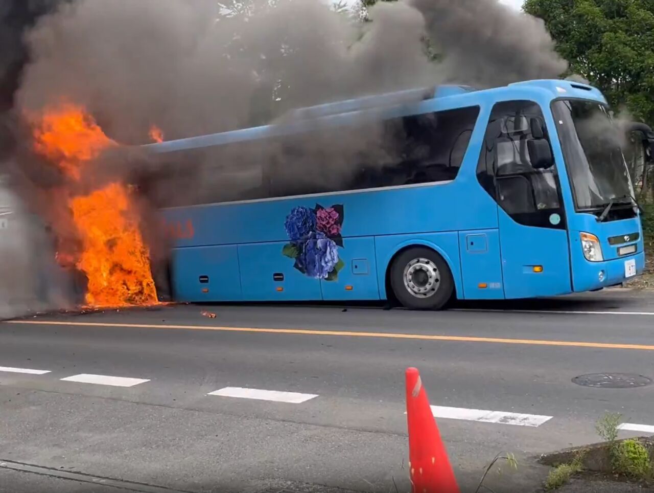 大型バスが燃えている模様
