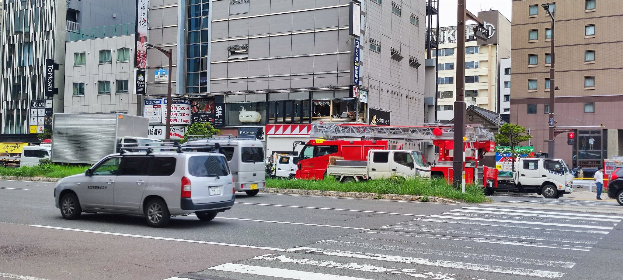 【目撃情報】『爆発音が聞こえた』#注意喚起 札幌市中央区南4条西2丁目 すすきの駅東側付近 歩道にガラス散乱し消防隊出動規制封鎖5月19日 #札幌 #すすきの #爆発