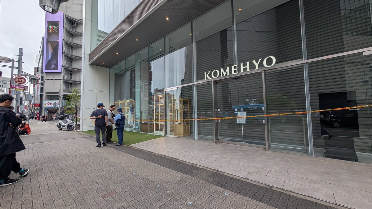 ブランド品買取ショップ「KOMEHYO 名駅店」のショーウインドーのガラスが割られ棚の商品が消える事件が発生