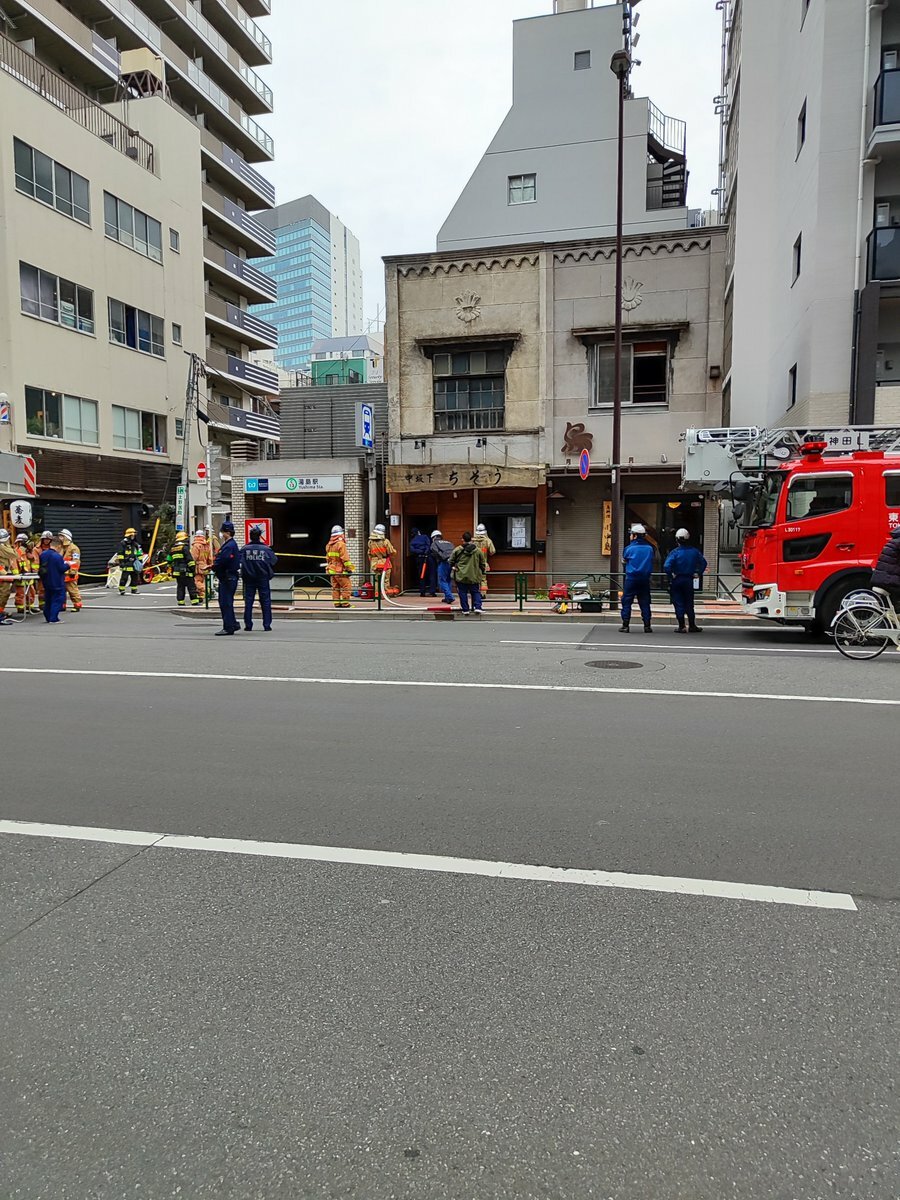 湯島6番出口のあたりに大量の消防車。何かあったのは隣の建物?#秋葉原 #湯島 pic.twitter.com/4v90UYkULm