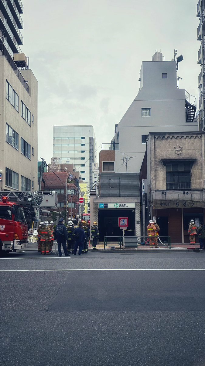 なんか湯島駅消防車しゅごい。。