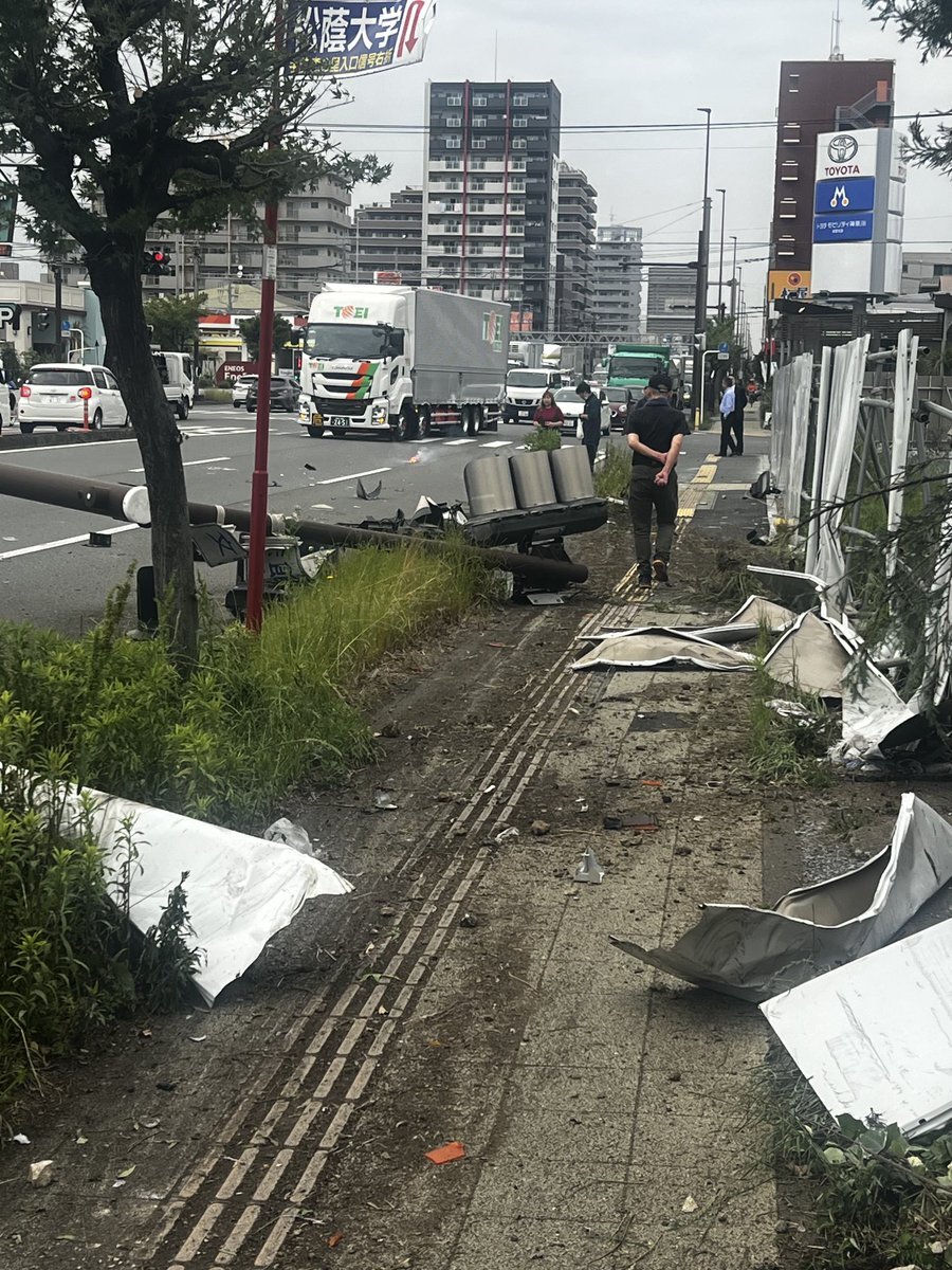 スマイルカンパニー前で信号機薙ぎ倒されてる😅— みぃーたん (@torachibihime) May 23, 2025