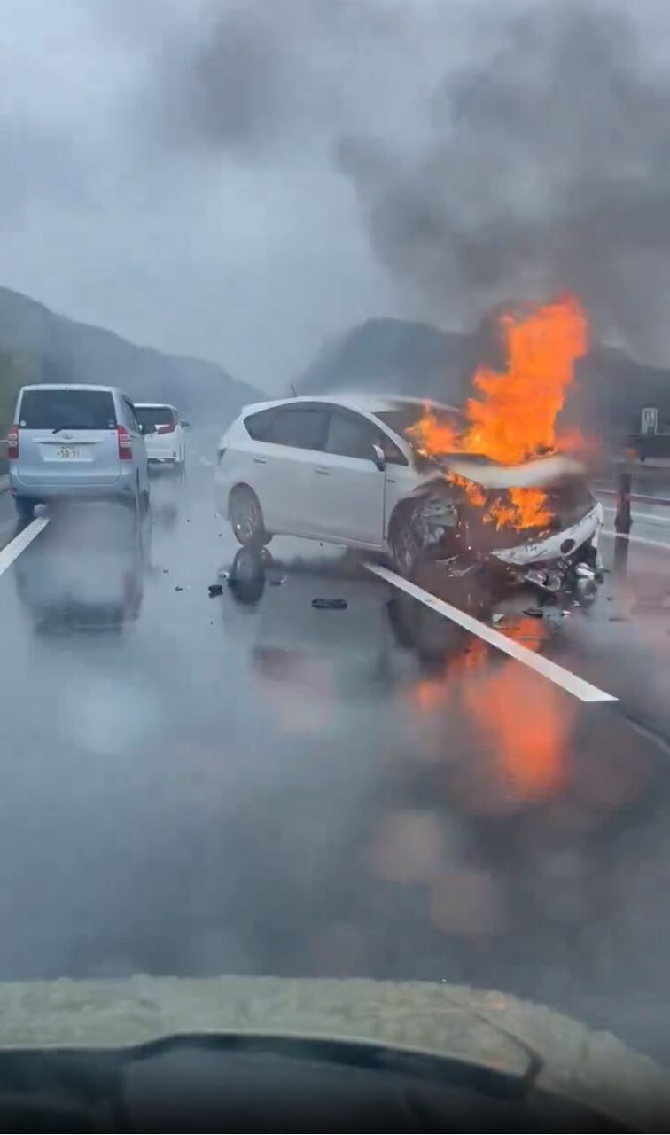 【現場の様子】#交通情報 『前の車を煽っていたプリウスが燃えてる』#神戸淡路鳴門道 下り 淡路島南IC→鳴門北IC付近 自動車燃える車両火災事故で通行止め渋滞3月24日 #渋滞 #通行止 #火災
